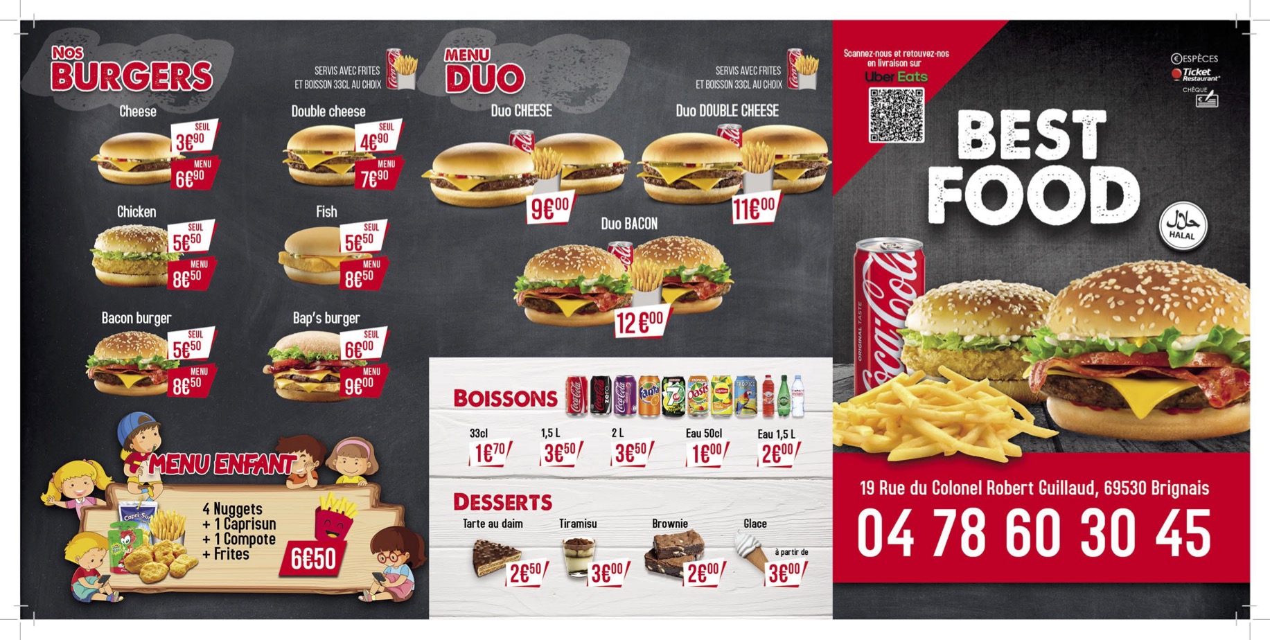 Bienvenue au BEST FOOD , situé dans la belle ville de BRIGNAIS. Nous sommes impatients de vous accueillir en tant qu'invité !